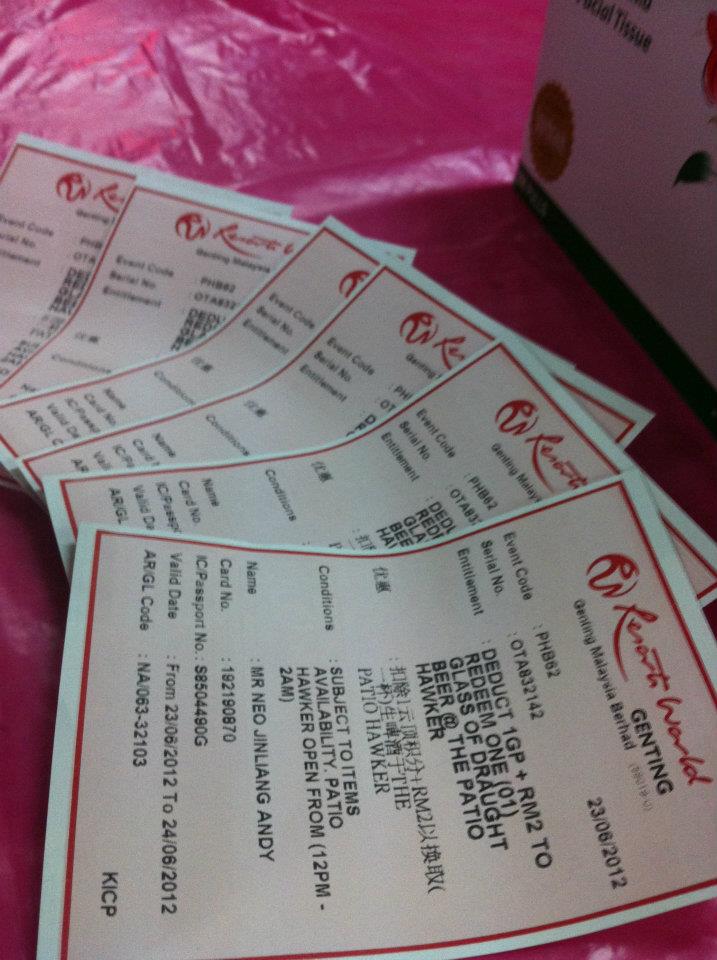 After dinner, I joined the guys for some beer while Joenn went to the casino with her family. We used our worldcard to redeem free beer vouchers :)